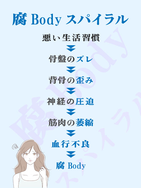 「骨盤の歪み」・・・・・(骨盤や背骨がズレ、歪む)