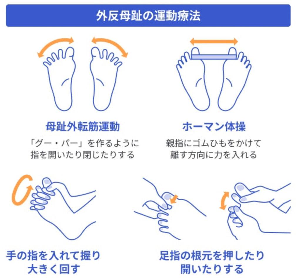 外反母趾は、軽度〜中等度であれば、手術をせずに症状を改善することも、進行を遅らせることも可能です。