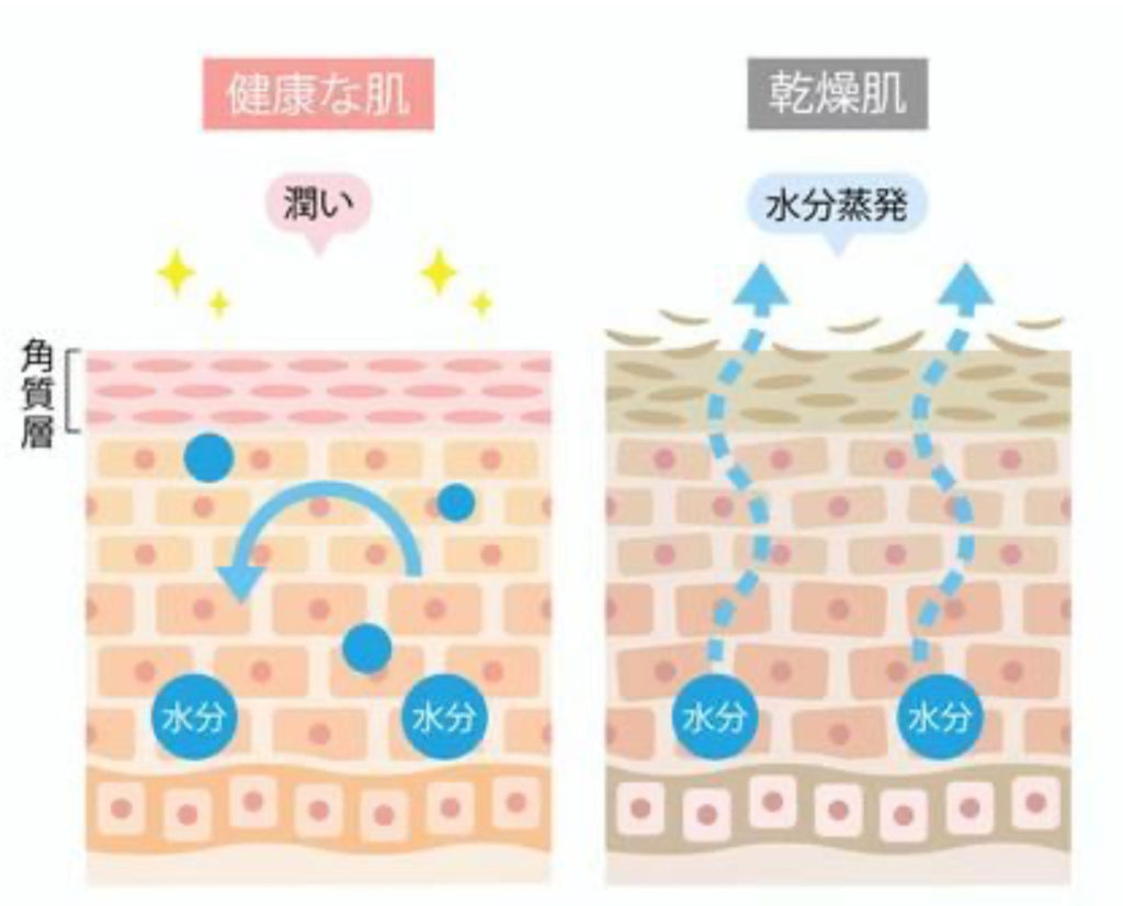 ⚪︎水分・皮脂の不足:乾燥肌は、肌の水分と皮脂が不足した状態です。