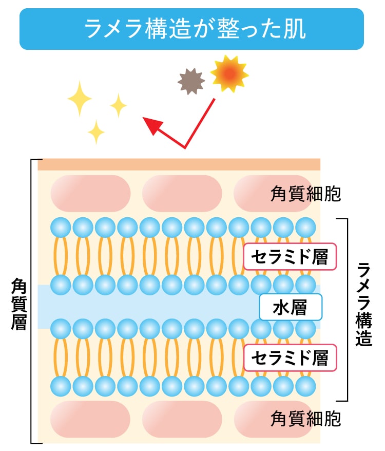 セラミドは、この角質層で水と結合し「ラメラ構造」を作り出します。