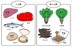 摂取POINT1 タンパク質、ビタミンB群、ビタミンC、カルシウムなどは、鉄の吸収を助けます。バランスよく摂り入れましょう。